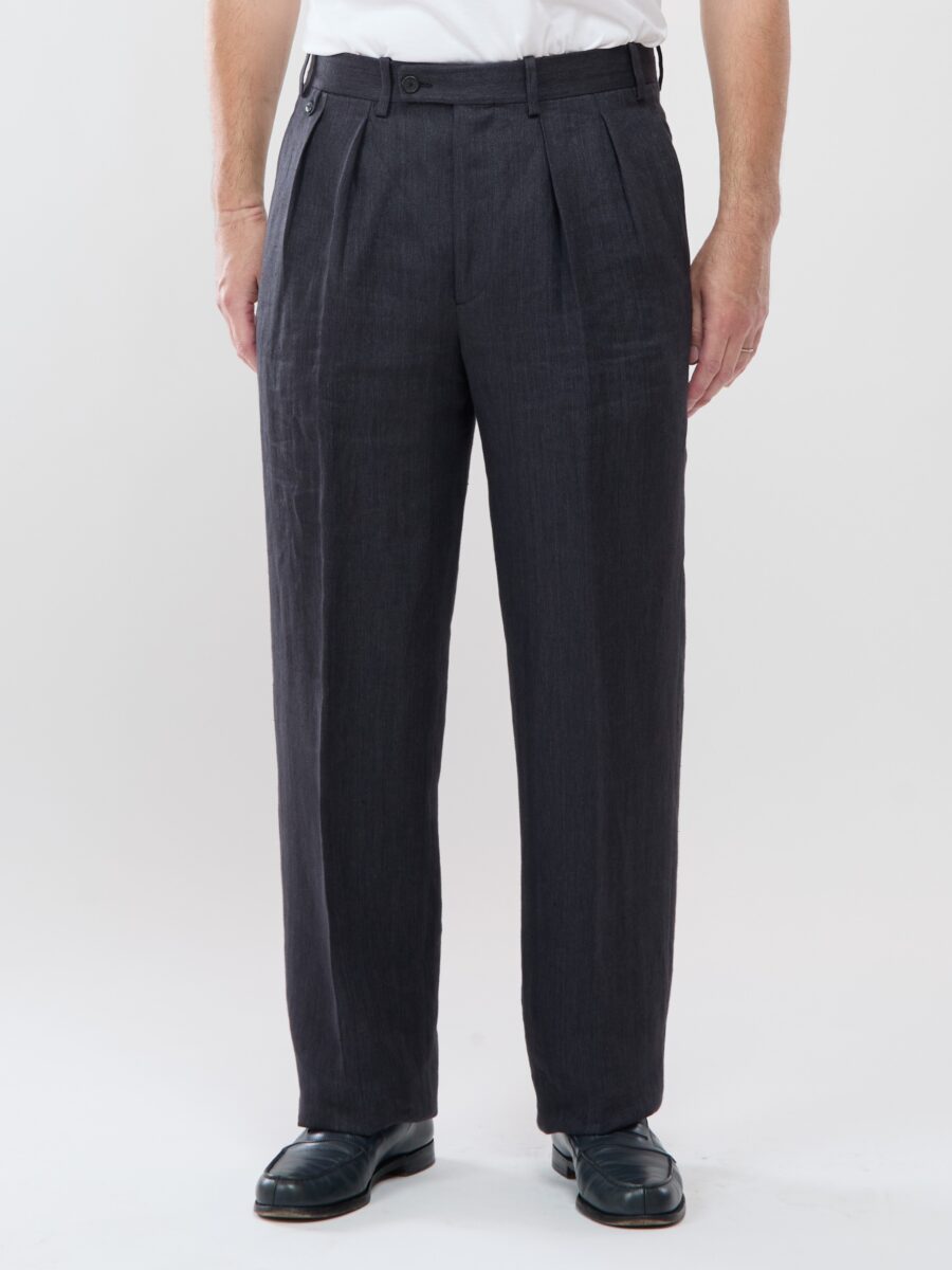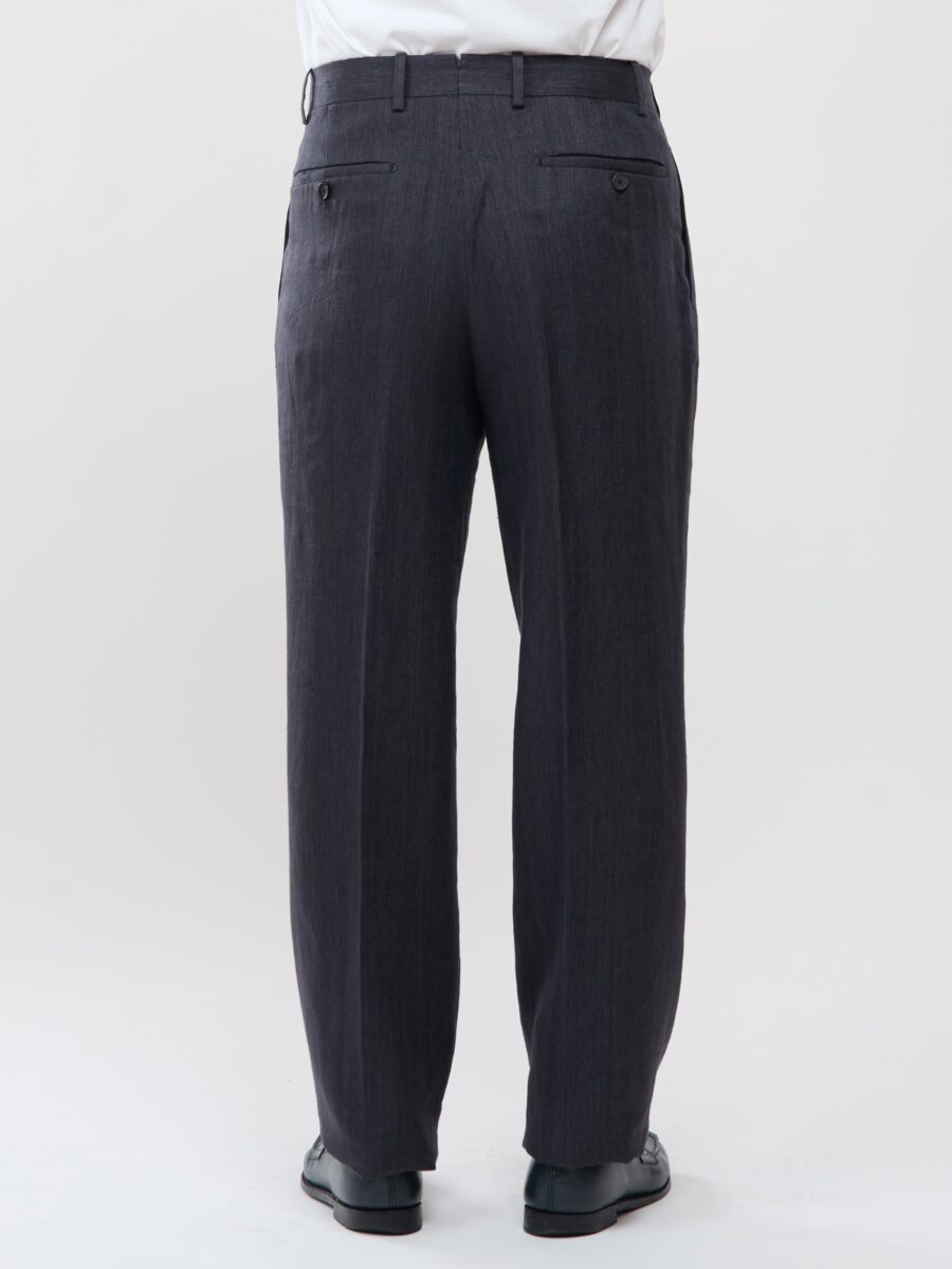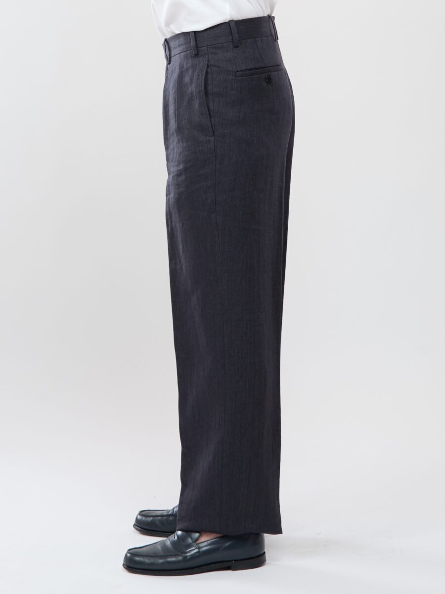 「BAC」は80年代後半のベストセラーで、BERNARD ZINSの定番モデル。2インプリーツが施されたゆとりのある腰回り、裾幅23センチでワイドでありながらややテーパードがかかったシルエットが美しく、完成されたバランスが魅力です。