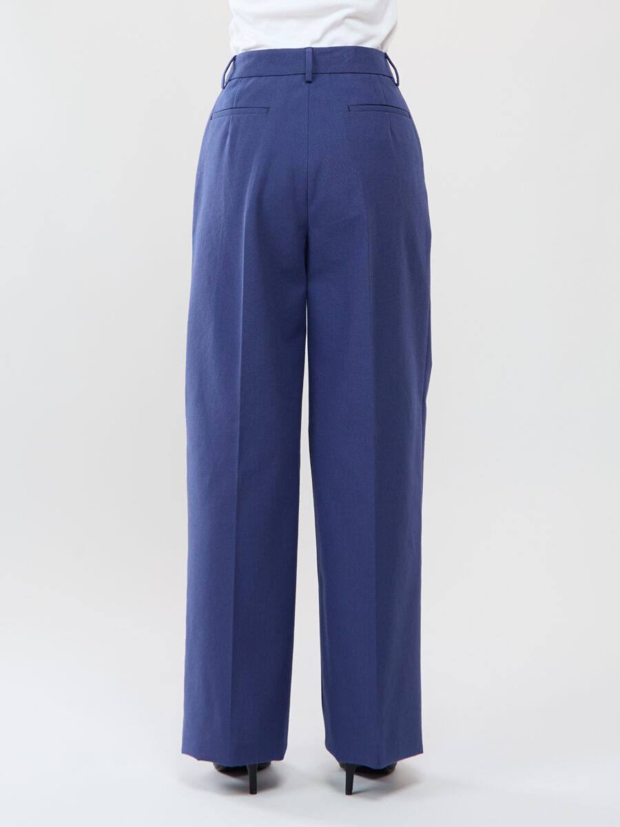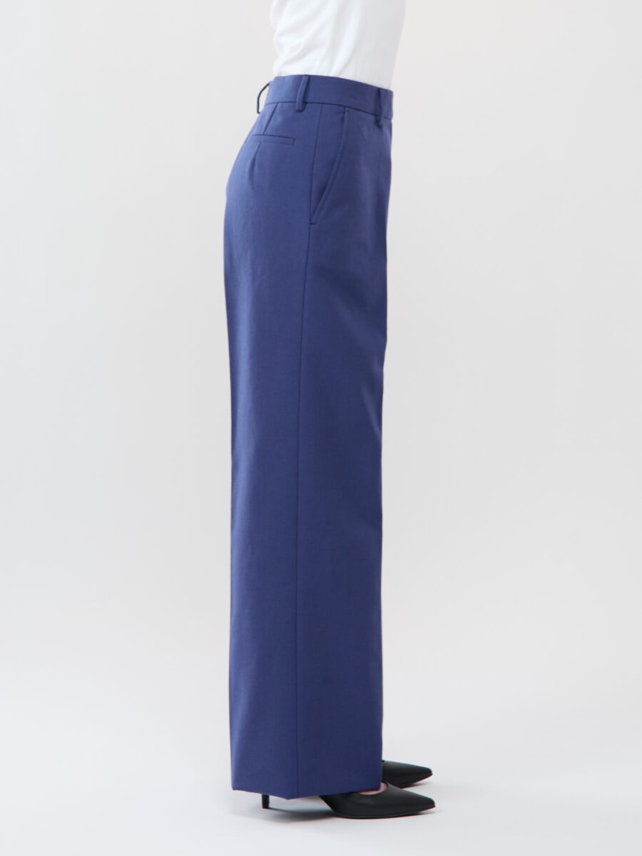 ・ワイド&ストレートシルエット(ノータック仕様) ・ハイウエスト ・スラントポケット(斜めポケット) ・リボルバーポケット ×2(ヒップポケット) ・裾幅:29.5cm