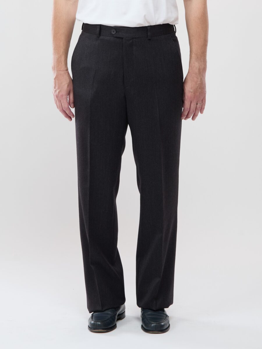 某フランスメゾンブランドモデルを復刻させた「MABILLON」。股上浅め、腰回りをコンパクトに仕上げたノータックのワイドストレートシルエット。
