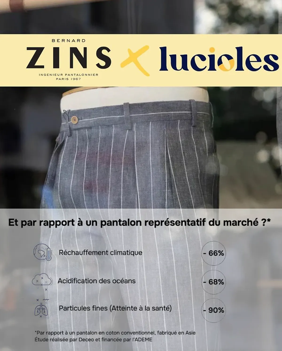 Relance社、Agir pour la transition écologique社と共同で、当社のズボンの環境影響評価に焦点を当てています。